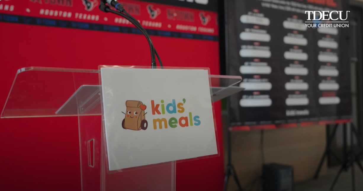 As the Red Zone sponsor for the Houston Texans and for the 2025-2026 season, TDECU and the Houston Texans will be teaming up with Kids’ Meals. Kids’ Meals is a non-profit organization that helps to fight child hunger in the Houston community. Every time the Texans' offense enters the "red zone" this season, TDECU will donate $300, which will provide 150 meals to children in need.